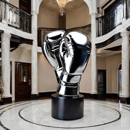 Experience sophistication and boldness with the ArtZ® Stainless Steel Boxing Gloves Sculpture. Perfect for indoor or outdoor spaces, its impeccable craftsmanship and distinctive concept effortlessly enhance the aesthetic of any home or workplace. Add a refined touch to your surroundings with this eye-catching piece.