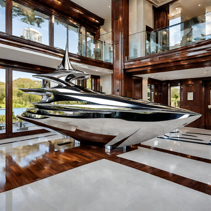 Elevate the aesthetic of your home or office with the ArtZ® Stainless Steel Yacht Sculpture. This stunning piece exudes elegance and grace, making it a refined addition to any living or work space. Display it indoors or outdoors for a mesmerizing centerpiece that adds a sophisticated touch.