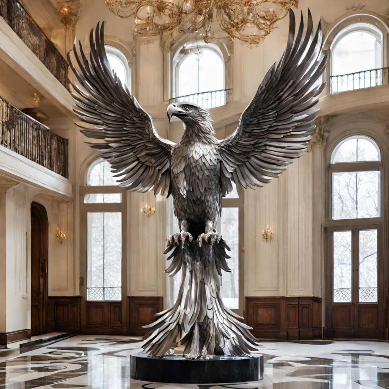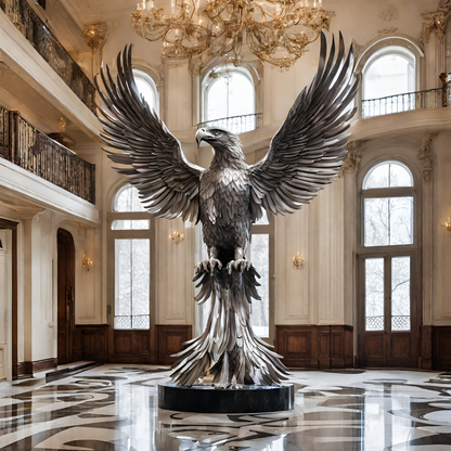 Enhance the visual appeal of your home or office space with the OSO Stainless Steel Eagle Sculpture. This exquisite piece exudes elegance and class, elevating any environment with a touch of refinement. Whether showcased inside or outside, it makes a striking centerpiece that enriches the overall ambiance.