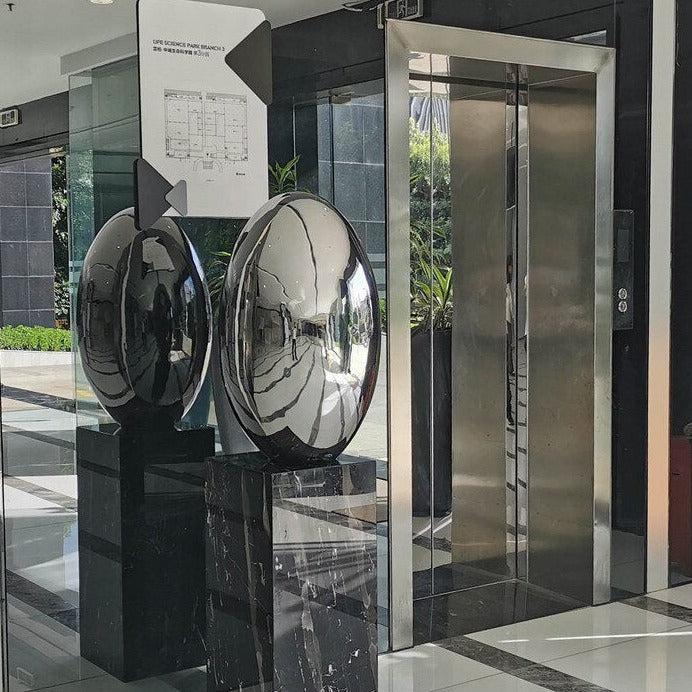 The ArtZ® Stainless Steel Oval Egg Sculptures are statement pieces that cannot be missed. These sculptures will add a sense of style and uniqueness, to the overall decor of your home or office. Perfect for indoor and outdoor use.