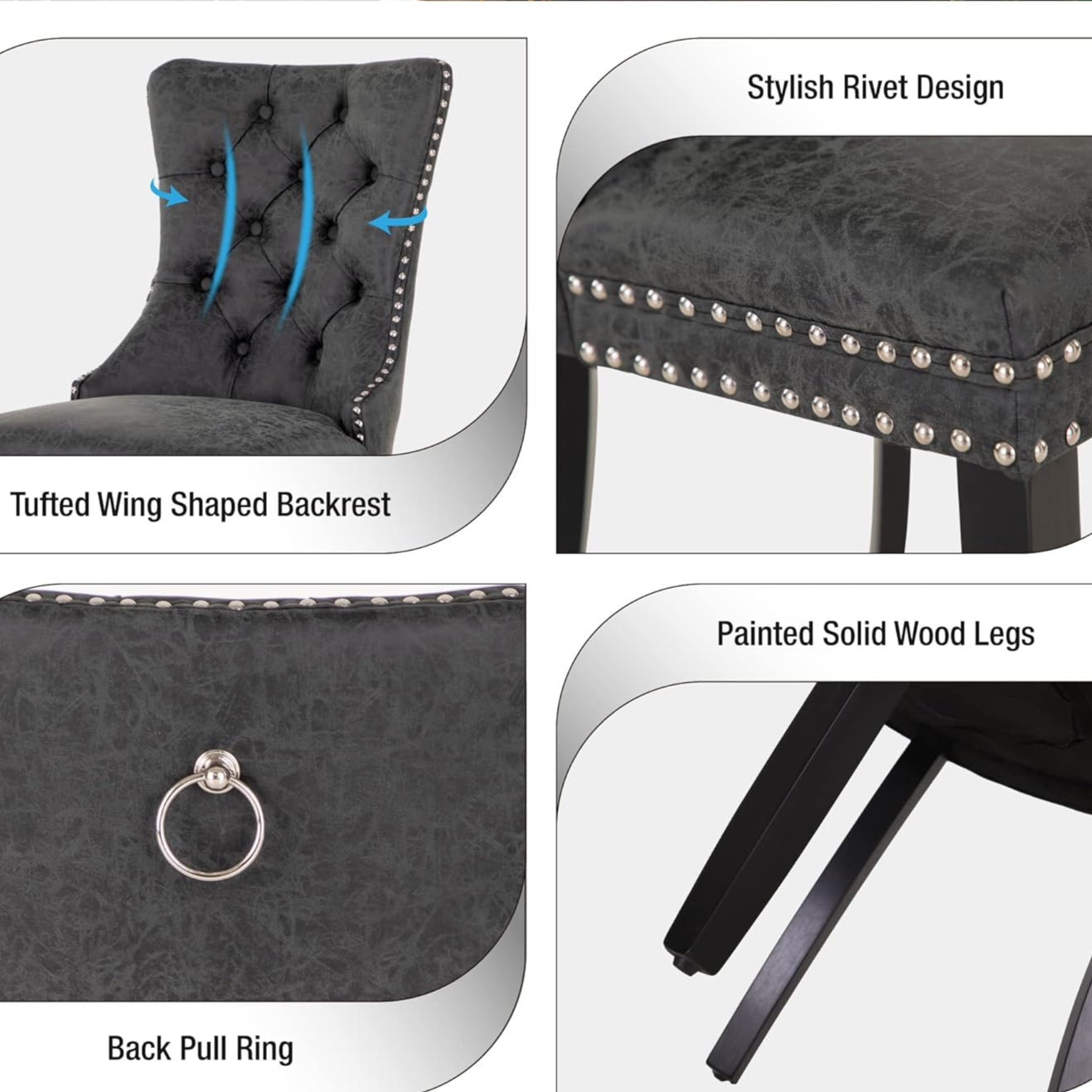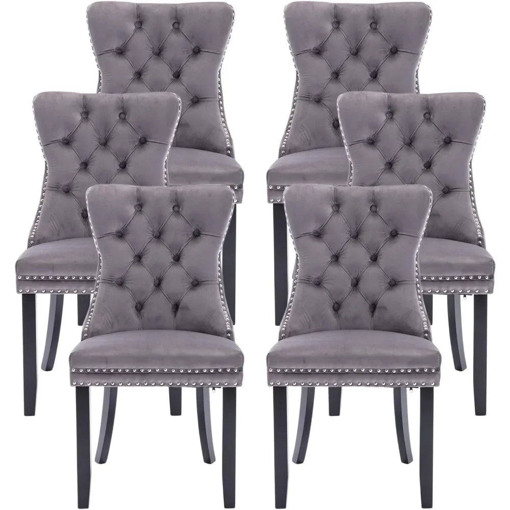 Elevate every meal with this stunning set of 6 ArtZ® Royale Dining Chairs — where comfort meets classic charm. Featuring elegant tufted backs, chic button detailing, and a stylish ring pull trim, these luxe beauties bring a touch of glam to your dining room or living space. Soft to the touch and built to impress, they're the perfect blend of cozy and classy. Gather in style, sit in comfort, and make every dinner feel like a special occasion! Each chair holds up to 280 lbs. (127 kg)