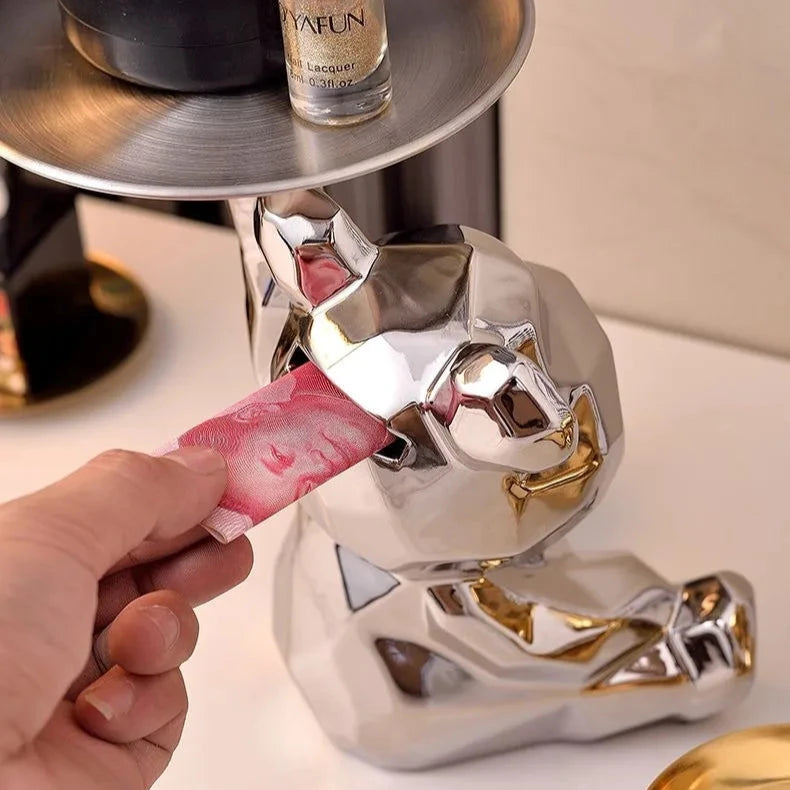 ArtZ® Ceramic Geometric Bear Sculpture Tray And Piggy Bank