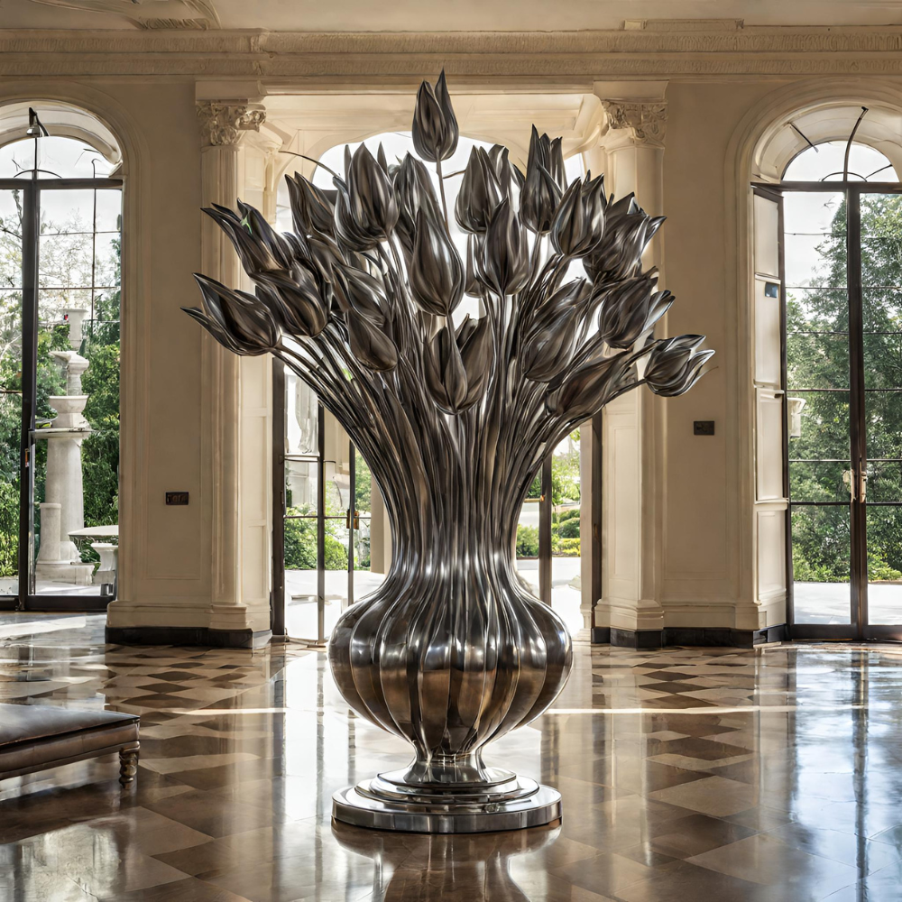 The ArtZ® Stainless Steel Tulips Sculpture is the perfect addition to any indoor or outdoor space. Its precise craftsmanship and original design effortlessly elevate the aesthetic of your home or workplace. This sculpture exudes sophistication and assurance, creating a refined atmosphere in any environment.