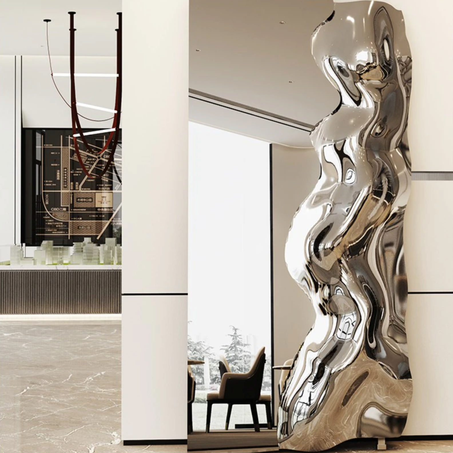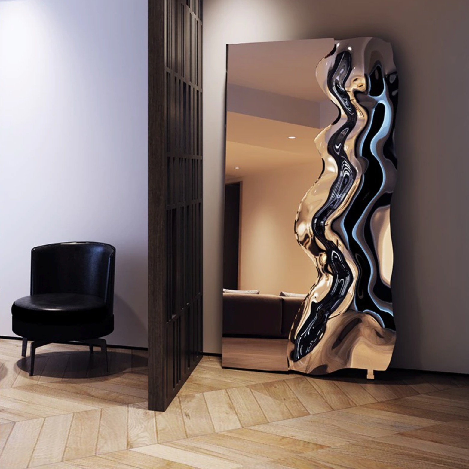 The ArtZ® Stainless Steel Lava Mirror is a statement piece that cannot be missed. This mirror will add a sense of style and uniqueness, to the overall decor of your home or office.