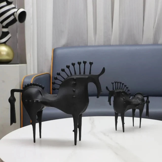 Upgrade up your living or working space with the ArtZ® Abstract Horse Metal Sculpture. This charming creation is bound to catch attention and infuse a sprinkle of refinement and charm into any setting.